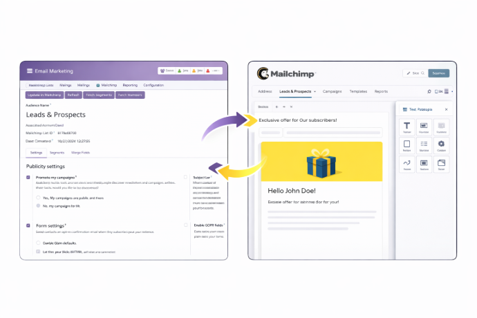 Design, export, and send Mailchimp campaigns from Odoo, eliminating duplicate work and keeping both platforms synchronized.
