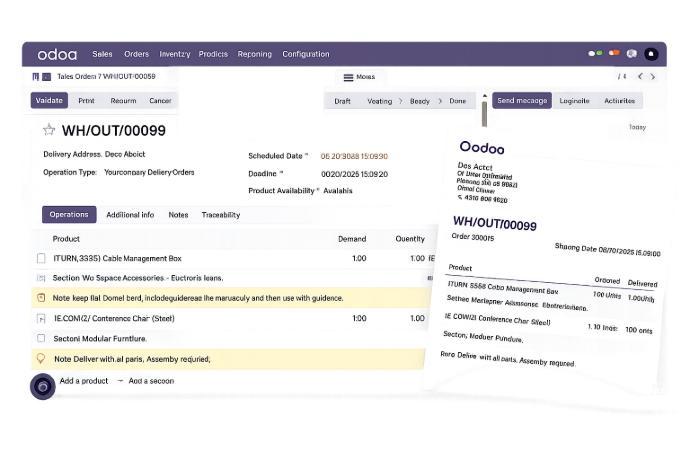 Organize warehouse deliveries with custom sections, notes, and annotations directly within Odoo picking operations β improving team communication, reducing errors, and keeping delivery documentation structured and clear.